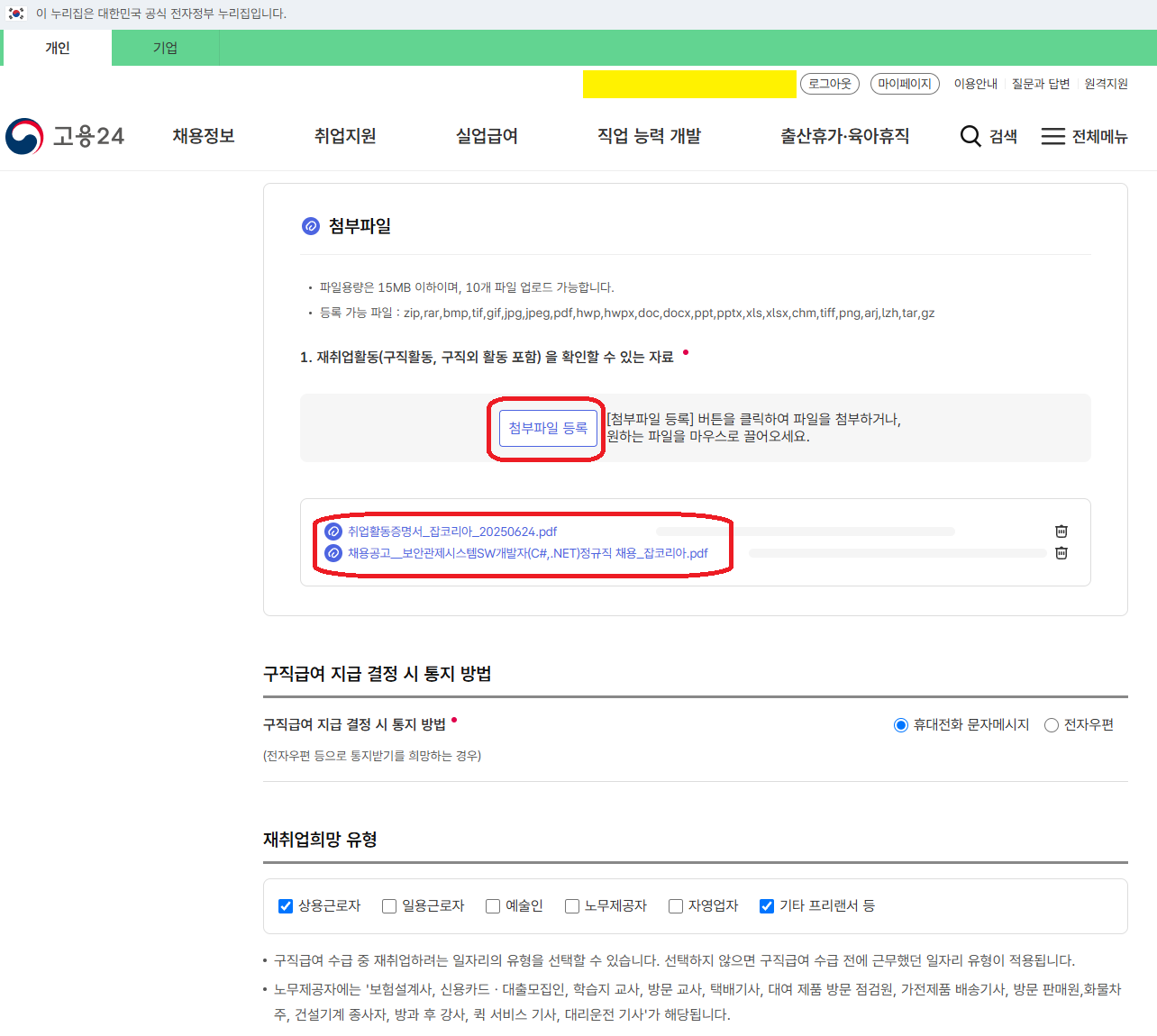 5. 민간취업포탈 구직활동 자료 등록 방법
