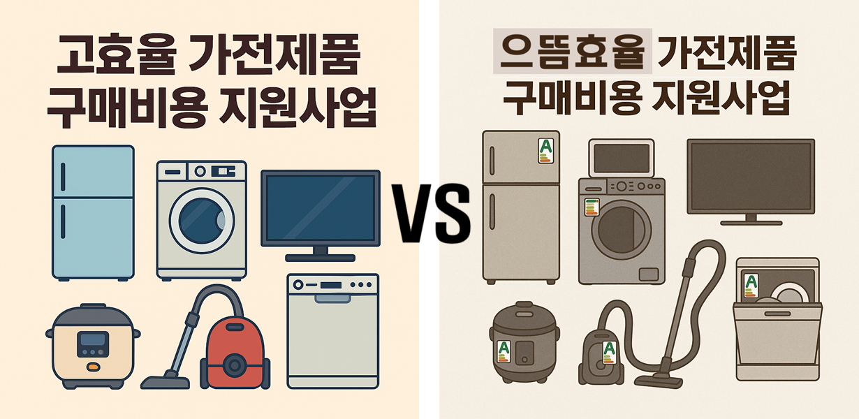 2025년에도 고효율 가전제품을 구매하면 정부나 공공기관에서 환급을 해주는 제도가 계속되고 있습니다. 하지만 이름이 비슷한 ‘고효율 가전 환급’과 ‘으뜸효율 가전제품 환급사업’은 운영 주체, 지원 대상, 환급 금액 등에서 명확한 차이를 가지고 있습니다.