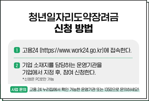- 해당 청년 채용 후 3개월 이내 고용센터 또는 고용24 통해 신청