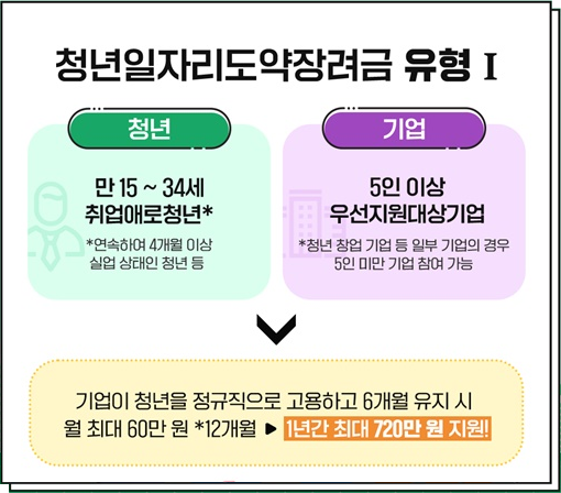 청년일자리도약장려금은 정부가 고용노동부를 통해 운영하는 청년취업지원 제도로, 취업이 어려운 청년의 고용을 유도하고 중소기업의 인건비 부담을 덜어주는 정부지원금입니다. 2025년부터는 유형Ⅰ(기업지원금)과 유형Ⅱ(장기근속 인센티브)로 나뉘며, 해당 기업과 청년 모두가 일정 요건을 만족해야 참여할 수 있습니다.