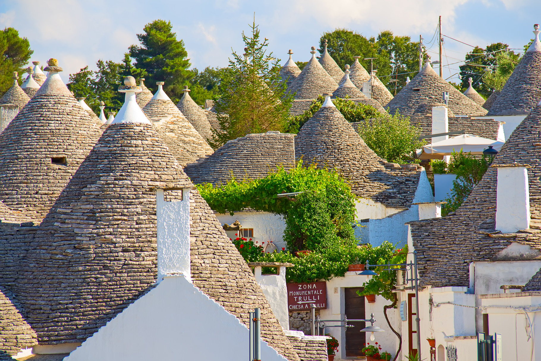 알베로벨로, 풀리아 지방의 트룰리는 특징적인 원뿔형 지붕의 주택으로, 이탈리아의 유네스코 세계문화유산 50개 중 하나입니다.