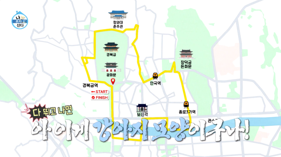 MBC 나혼자 산다 621회에서 전현무가 도전한 ‘강아지런’은 광화문·경복궁·청와대를 잇는 8km GPS 드로잉 코스로, 완주 시 강아지 모양 경로가 완성되는 러닝 루트입니다. 본문에서는 이 코스를 G