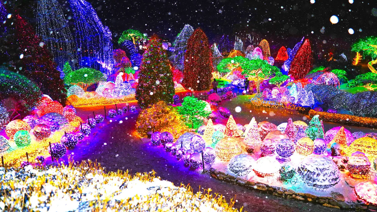 가평의 아침고요수목원은 겨울이 되면 ‘오색별빛정원전’으로 불립니다. 정원 전체가 수백만 개의 조명으로 덮이며, 하늘정원·달빛정원·사랑의 정원 등 테마별로 꾸며져 있습니다. 눈이 내리는 날에는 반사되는 불빛이 만들어내는 풍경이 정말 환상적입니다.